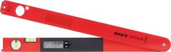 Wykonanie: jedno narzędzie, trzy funkcje: kątomierz cyfrowy, poziomica i kątownik ukośny. Wyświetlacz cyfrowy z dużymi cyframi do łatwego odczytu wartości pomiarowych, podświetlenie może być włączane i przyciemniane. 1 libella pozioma, 1 pionowa, 2 powlekane powierzchnie pomiarowe. Dokładność pomiarowa ± 0,1°. Dostawa z 2 bateriami AA/LR06 i futerałem.